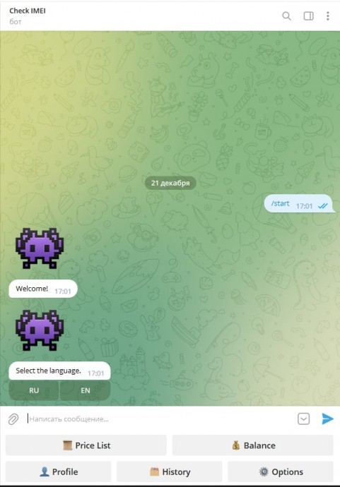 Зайди в телеграм по ссылке бота t.me/iCloudIMEIBot