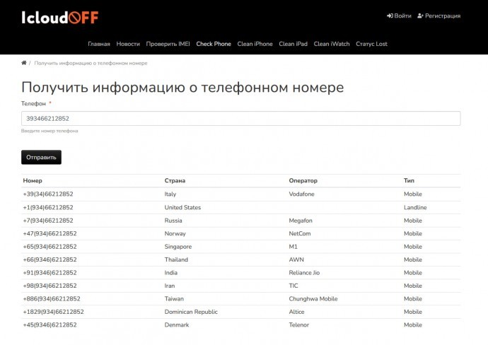 Перейдите на страницу проверки номера icloudoff.com/checkphone